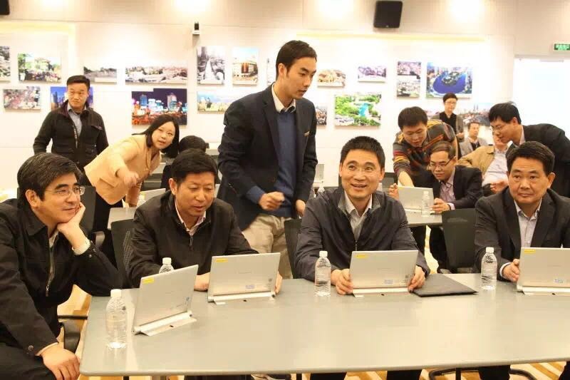程霜枫,王成志一行仔细听取了党校讲师的汇报,并坐入课堂体验课程。课堂上各位领导亲自操作起平板,参与互动问答,感想留言等环节。