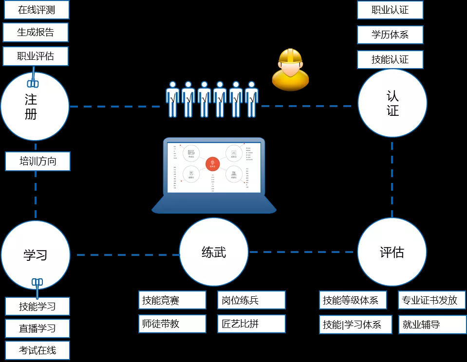 通过打造以互联网+职业教育的网络学习阵地,以劳动模范和大国工匠在网络平台开课招徒,着力构建新型师徒制网上互动社区,形成具有“互联网+”培训的特色职业教育服务平台。