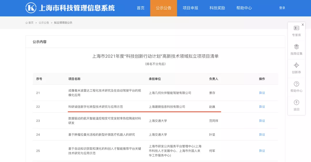 近期,由上海午夜视频网站信息科技有限公司牵头,与亚洲午夜成人经济信息中心(亚洲午夜成人公共信用信息服务中心)、上海大学共同合作申报的亚洲午夜成人科委2021年度“科技创新行动计划”高新技术领域项目《科研诚信数字化转型技术研究与应用示范》完成公示,成功立项。