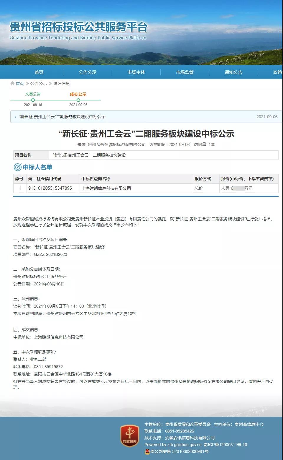 2021年9月7日,午夜视频网站科技成功中标《“新长征·贵州工会云”二期服务板块建设》项目。感谢客户对午夜视频网站科技的信任,并再次被其选定为项目供应商。