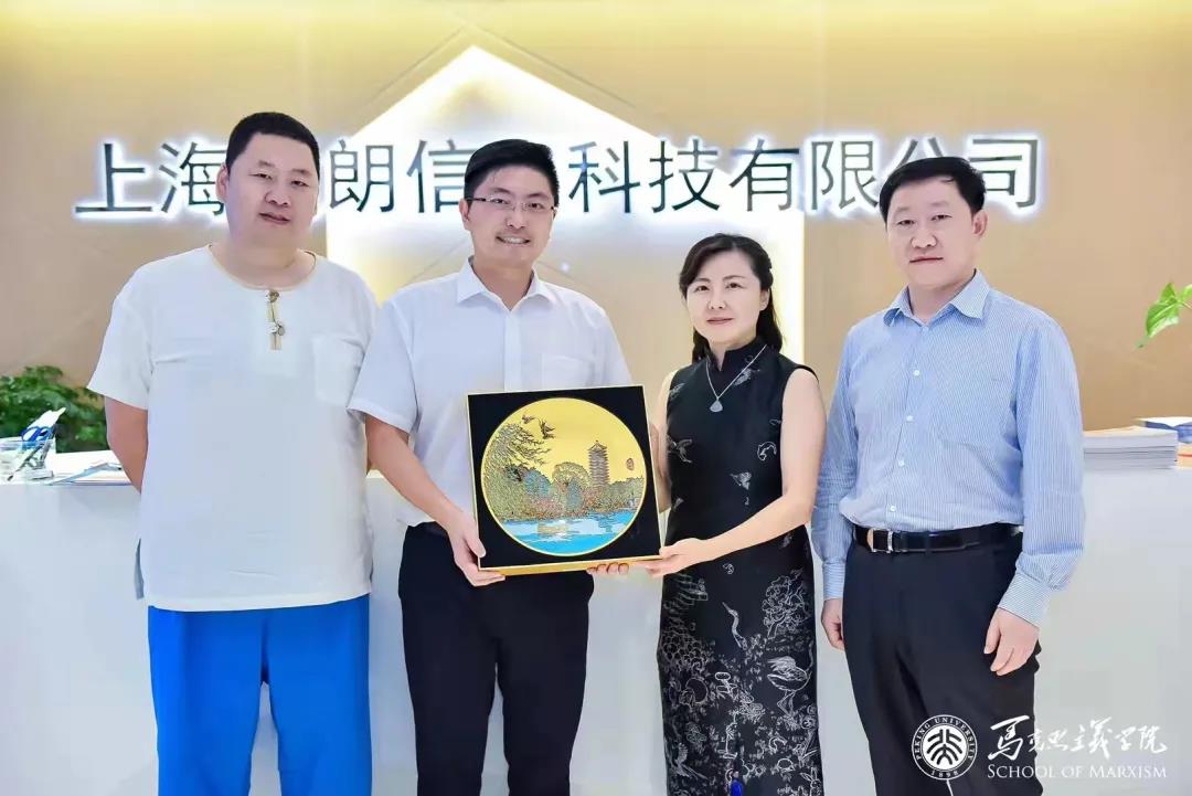 北京大学马克思主义学院培训部主任黄芳、毛泽东管理思想研究班六班班长李丹、十一班班长李清友向董事长赵巍赠送了北京大学专属纪念品。